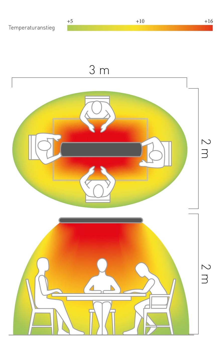 Design-Dunkelstrahler mit mittelwelliger und langwelliger Infrarotstrahlung ohne sichtbares Licht, 2400 Watt, 10,4 A, 220-240 V / ~50/60 Hz, Schutzart IP55, Farbe silbergrau eloxiert, 1,8 m Silikon-Anschlussleitung, mit Wand-/Deckenhalterung. Wärmebereich ca. 6 m². Ideal zur Beheizung von windgeschützen Außenbereichen wie Terrassen, Freisitze, Verandas oder Innenbereiche wie Wintergärten, Wellnesszonen usw. Für Innen und Außen geeignet! Das Gerät ist zur punktuellen Erwärmung von definierten Bereichen konstruiert und nicht als alleinige Raumheizung geeignet. Aufgrund der Art der IR-Strahlung (langwellig) für Außen nur in absolut windfreien Bereichen wirkungsam. Ein Fehlerstromschalter (FI-Schalter) mit einem Auslösestrom von 30 mA ist dem Gerät vorzuschalten.