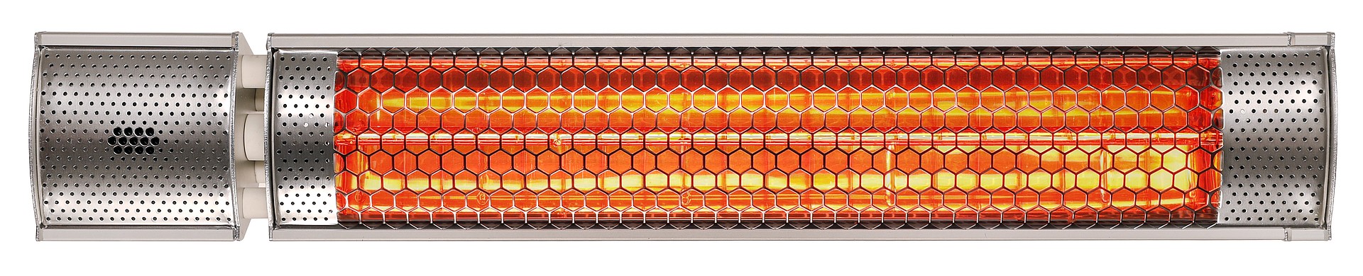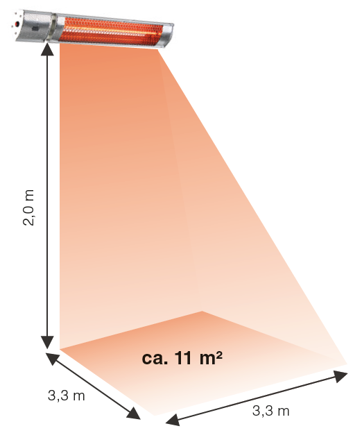 CasaTherm S2000 FB Gold, Halogen-Infrarotheizstrahler, 2.000 Watt, inkl. Fernbedienung (2 Stufen, Ein/Aus) und Wandhalterung, Gehäuse Aluminium silber, Schutzart IP55, Schutzklasse I, 220 - 240 V / 50/60 Hz, Stromaufnahme 8.7 A, Wärmebereich bis 11 m², Aufheizzeit ca. < 5 Sekunden, empf. Mindestabstand Decke/Schirm 0,40 m, Lebensdauer Röhre ca. 5.000 Std., 1,8 m Gummikabel mit Schutzkontaktstecker, Ein/Aus-Schalter am Gerät. Ersatzröhren, Standaufsteller, Klemmen und Kettenabhängung optional erhältlich.