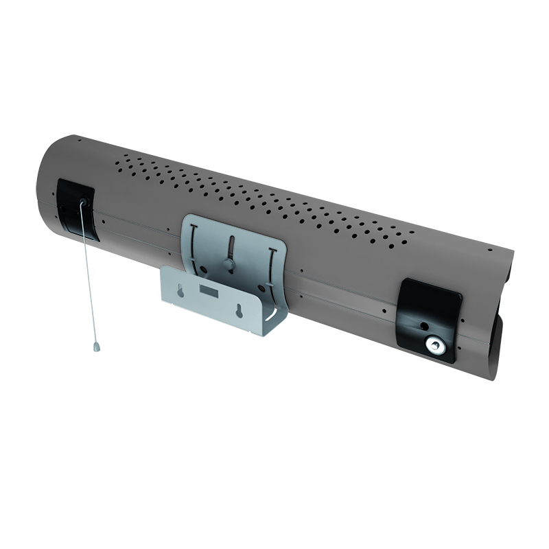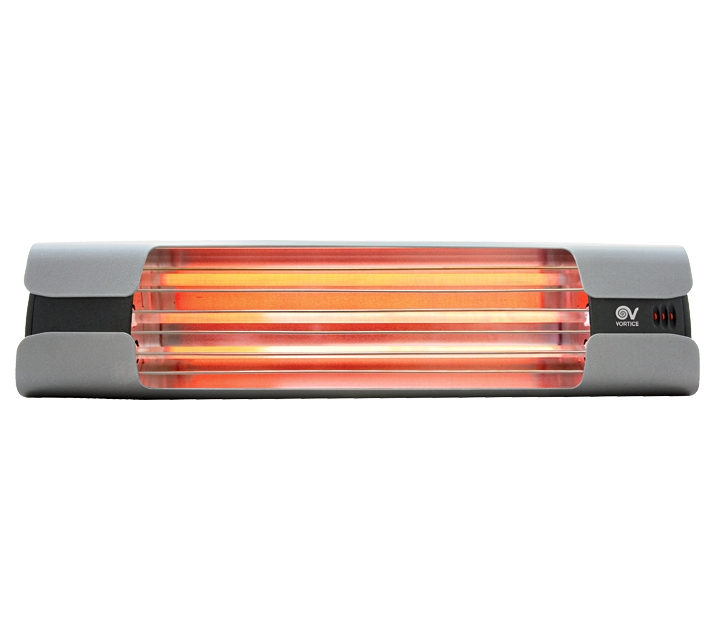 Quarz-Infrarotheizstrahler, 1800 W, Gehäuse mittelgrau poliert, integrierte Wandhalterung, mit 3-Stufen-Zugschalter, ohne Anschlusskabel, Schutzart IPX4, 220-240 V /~50/60 Hz, 7,83 A, Wärmebereich ca. 5 m², empf. Mindestabstand zur Decke 0,15 m. Für Innen und Außen geeignet! Das Gerät ist zur punktuellen Erwärmung von definierten Bereichen konstruiert und nicht als alleinige Raumheizung geeignet.