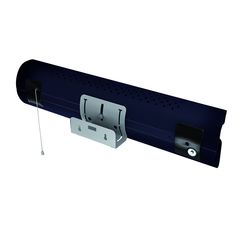 Quarz-Infrarotheizstrahler, 1800 W, Gehäuse dunkelblau poliert, integrierte Wandhalterung, mit 3-Stufen-Zugschalter, ohne Anschlusskabel, Schutzart IPX4, 220-240 V /~50/60 Hz, 7,83 A, Wärmebereich ca. 5 m², empf. Mindestabstand zur Decke 0,15 m. Für Innen und Außen geeignet! Das Gerät ist zur punktuellen Erwärmung von definierten Bereichen konstruiert und nicht als alleinige Raumheizung geeignet.