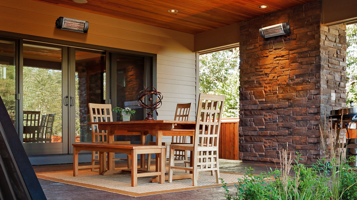 Halogen-Infrarotheizstrahler Thermologika Soleil System 1500, 1500 W, inkl. Wandhalterung mit Neigungswinkel, 2,0 m Anschlusskabel für Festmonage oder zur Anbringung eines Steckers, 6,8 A, 220-230 V/ 50/60 Hz, Schutzart IP65, empf. Mindestabstand zur Decke 0,3 m. Nur für den Einsatz im Freien geeignet.