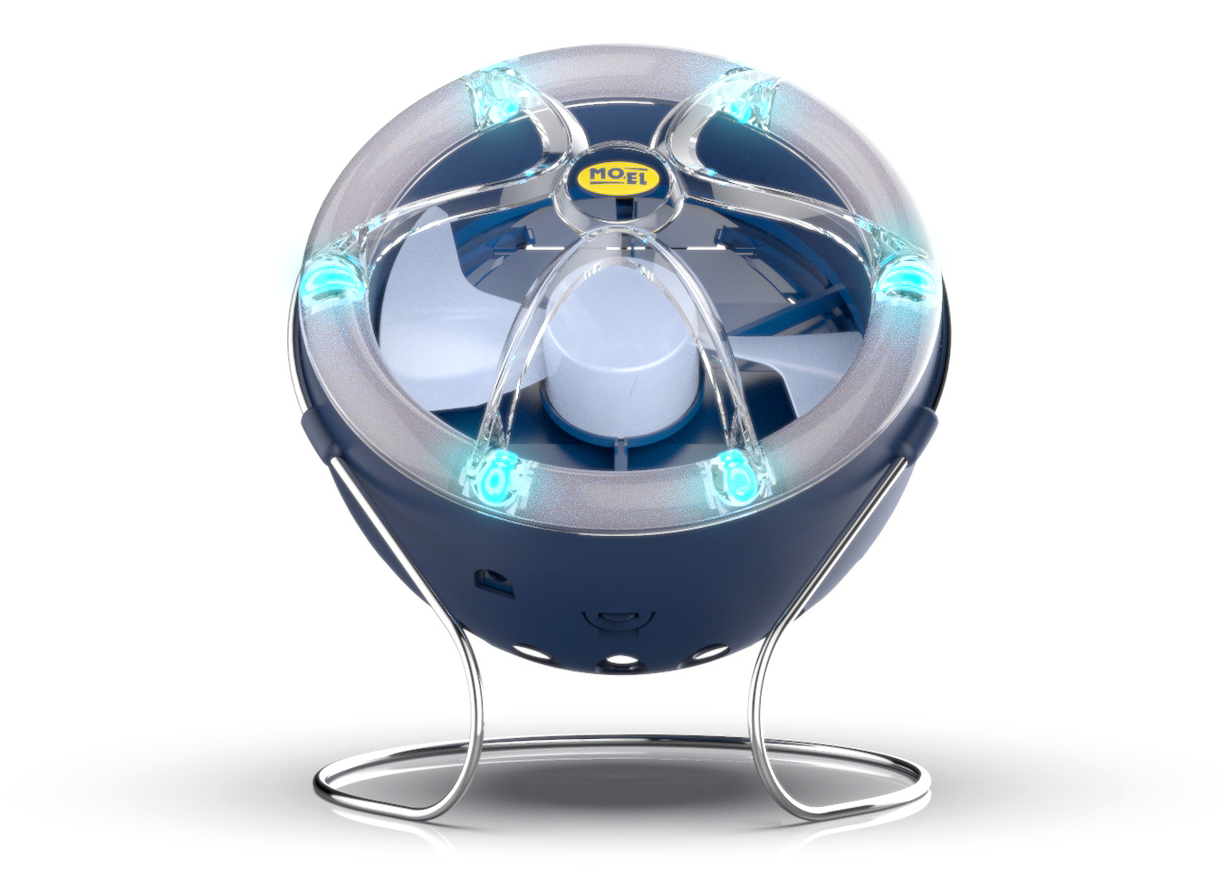 Design-Insektenventilator zum professionellen Einsatz mit 6 UV-A LEDs, Gehäuse Kunststoff, Gehäusefarbe blau, 1 Gebläsestufe 1.200 U/min, 100-240V 50-60Hz, Motor max. 4,5 W, Schutzart IPX4, Leistung 9 W, 250 x 251 x 280 mm, An-/Ausschalter, Kabel 5 m, Schutzklasse II. Insekten werden angesaugt und in einem Behälter gesammelt und dehydriert. Wirkungsvolles Klappensystem schließt den Behälter in ausgeschalteten Zustand. Reichweite 6 - 7 m, Schutzklasse II, Lebensdauer Röhre 2.000 h. Einsatz von nicht-selektiven Insektenfängern nicht im Freien zulässig. Die enthaltenen Speziallampen sind nicht zur Raumbeleuchtung im Haushalt geeignet.