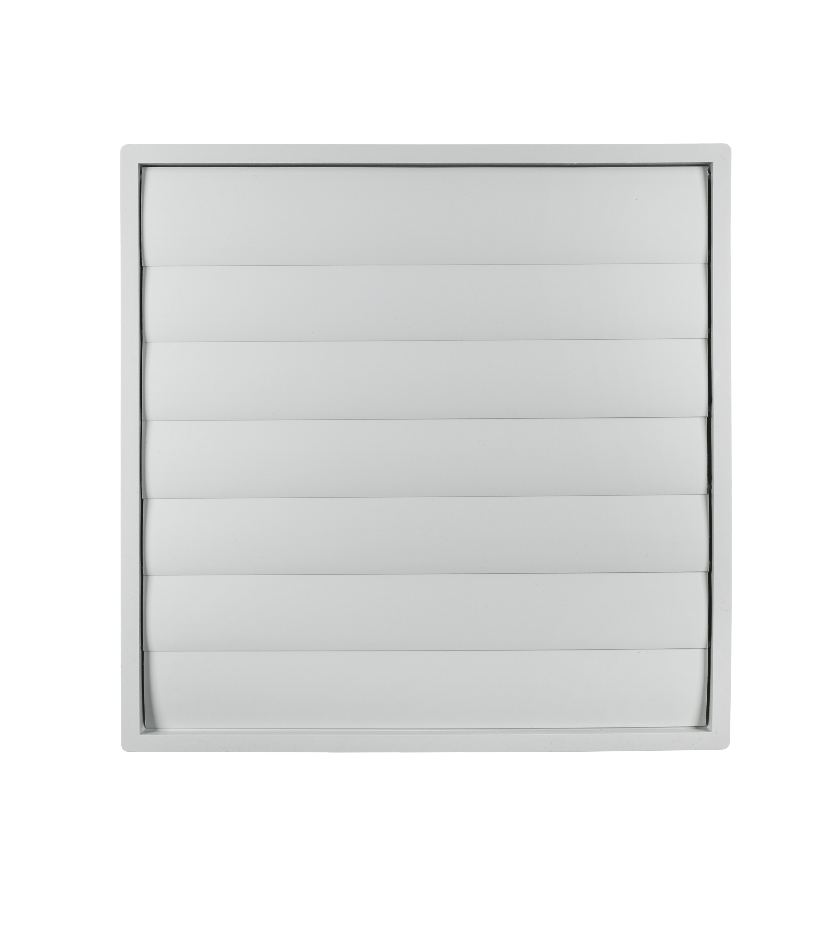 VKS 35, Selbsttätige Verschlussklappe aus Kunststoff, NW 350, 397 x 397 x 26 mm, Bohrungsdurchm. 5mm, hellgrau RAL 7035, UV-stabil, max. Strömungsgeschwindigkeit 10 m/s, max. Temp. -30 - + 60 °C, inkl. Befestigungssatz,
