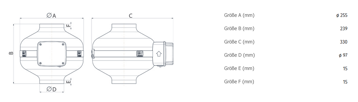 | Motor: | 0-10 V Schnittstelle, bürstenloser EC-Motor, kugelgelagert, thermischer Überlastungsschutz |