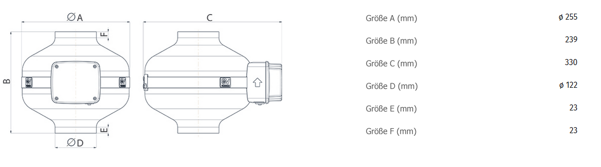 | Motor: | 0-10 V Schnittstelle, bürstenloser EC-Motor, kugelgelagert, thermischer Überlastungsschutz |