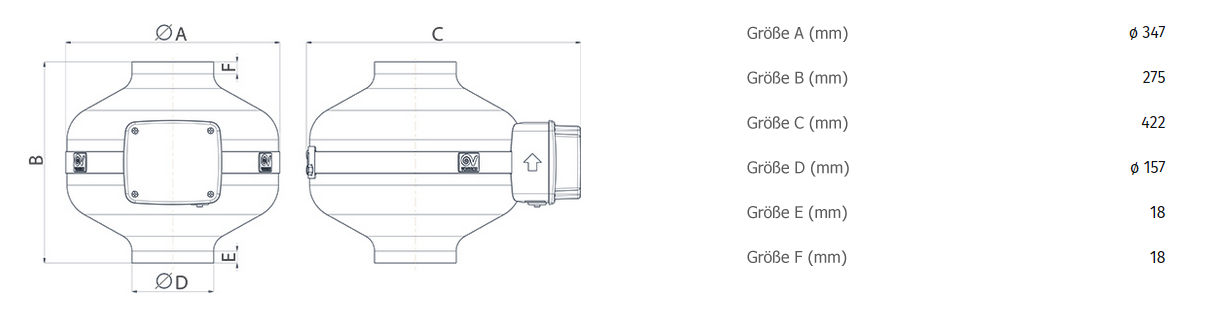 | Motor: | 0-10 V Schnittstelle, bürstenloser EC-Motor, kugelgelagert, thermischer Überlastungsschutz |