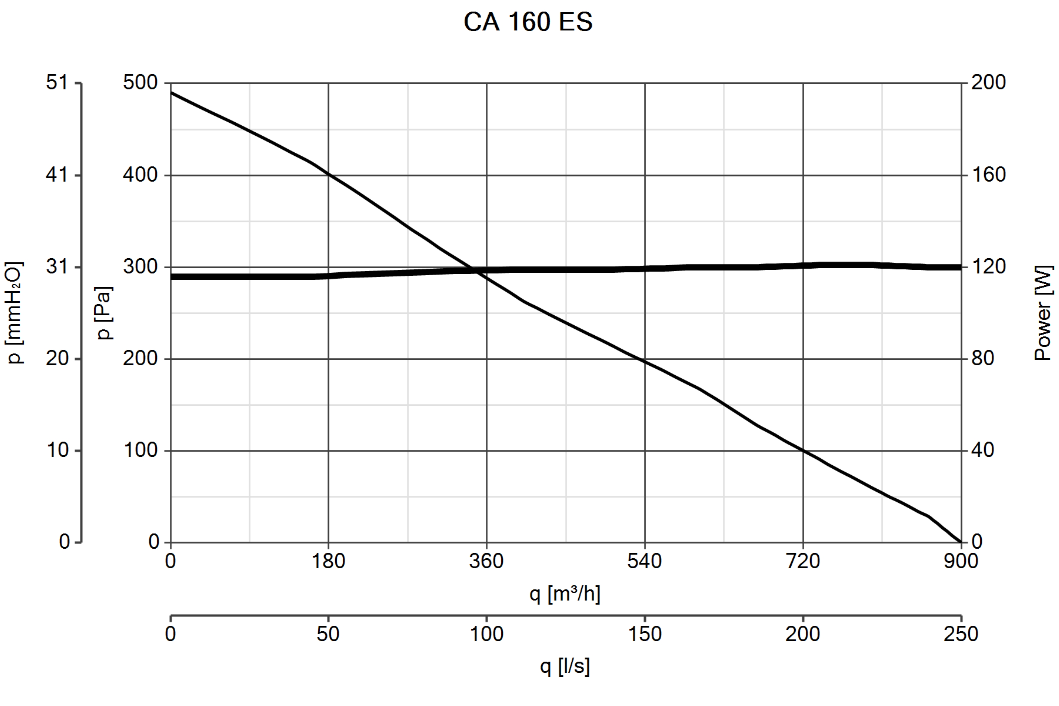 CA 160 ES 0-10V, Rohrradialventilator, energiesparend, NW 160 mm, aus phosphatiertem Stahl mit Polyester-Pulverbeschichtung, Hammerschlaglackierung, Farbe grau, 2 stufiger- bürstenloser EC-Motor, Radiallaufrad mit rückwärtsgekrümmten Schaufeln, 220-240 V~50 Hz, 120 W, max. 1,0 A, max. 900 m³/h, max. 490 Pa, max. 2.250 U/min., LP max. 48,1 dB(A) -3m, Schutzart IP44, Schutzklasse II,Temp. max. für Dauerbetrieb 50 °C, inkl. Montagekonsolen, Motor kugelgelagert, 0-10 V Schnittstelle, thermischer Überlastschutz
