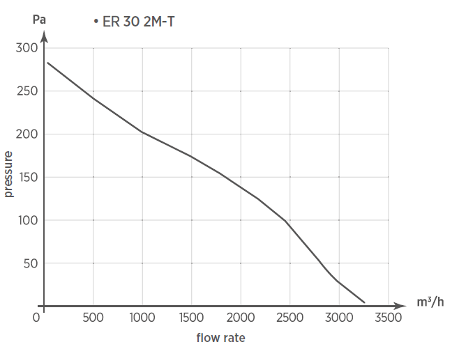 ER 30/2 M, Axialer Rohrventilator, NW 300 mm, Kurzgehäuse, Stahl verzinkt, Zweischicht- Korrosionsschutzlackierung, Farbe schwarz, 230 V~50-60 Hz, einphasig, 2-polig, max. 230 W, max. 3.300 m³/h, max. 280 Pa, max. 1,1 A, max. 2.650 U/min., LP max. 70 dB(A) -2m, Schutzart IP44, Schutzklasse I, Temp. max. für Dauerbetrieb 60 °C, Außenläufermotor, kugelgelagert, drehzahlregelbar, reversierbar