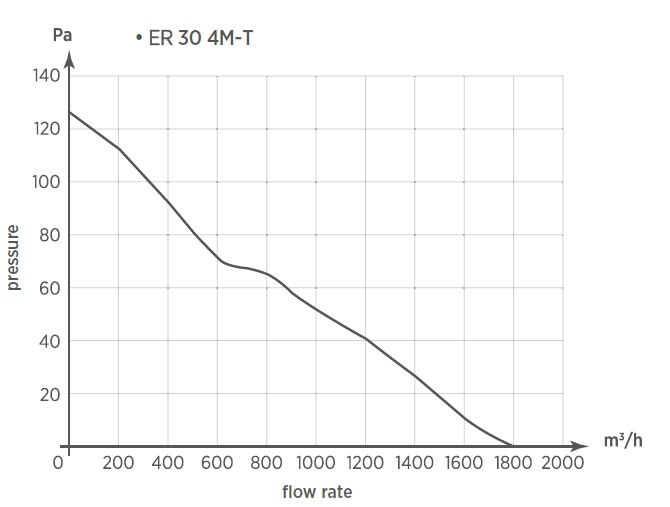 ER 30/4 M, Axialer Rohrventilator, NW 300 mm, Kurzgehäuse, Stahl verzinkt, Zweischicht- Korrosionsschutzlackierung, Farbe schwarz, 230 V~50-60 Hz, einphasig, 4-polig, max. 70 W, max. 1.800 m³/h, max. 125 Pa, max. 0,3 A, max. 1.350 U/min., LP max. 49 dB(A) -2m, Schutzart IP44, Schutzklasse I, Temp. max. für Dauerbetrieb 60 °C, Außenläufermotor, kugelgelagert, drehzahlregelbar, reversierbar