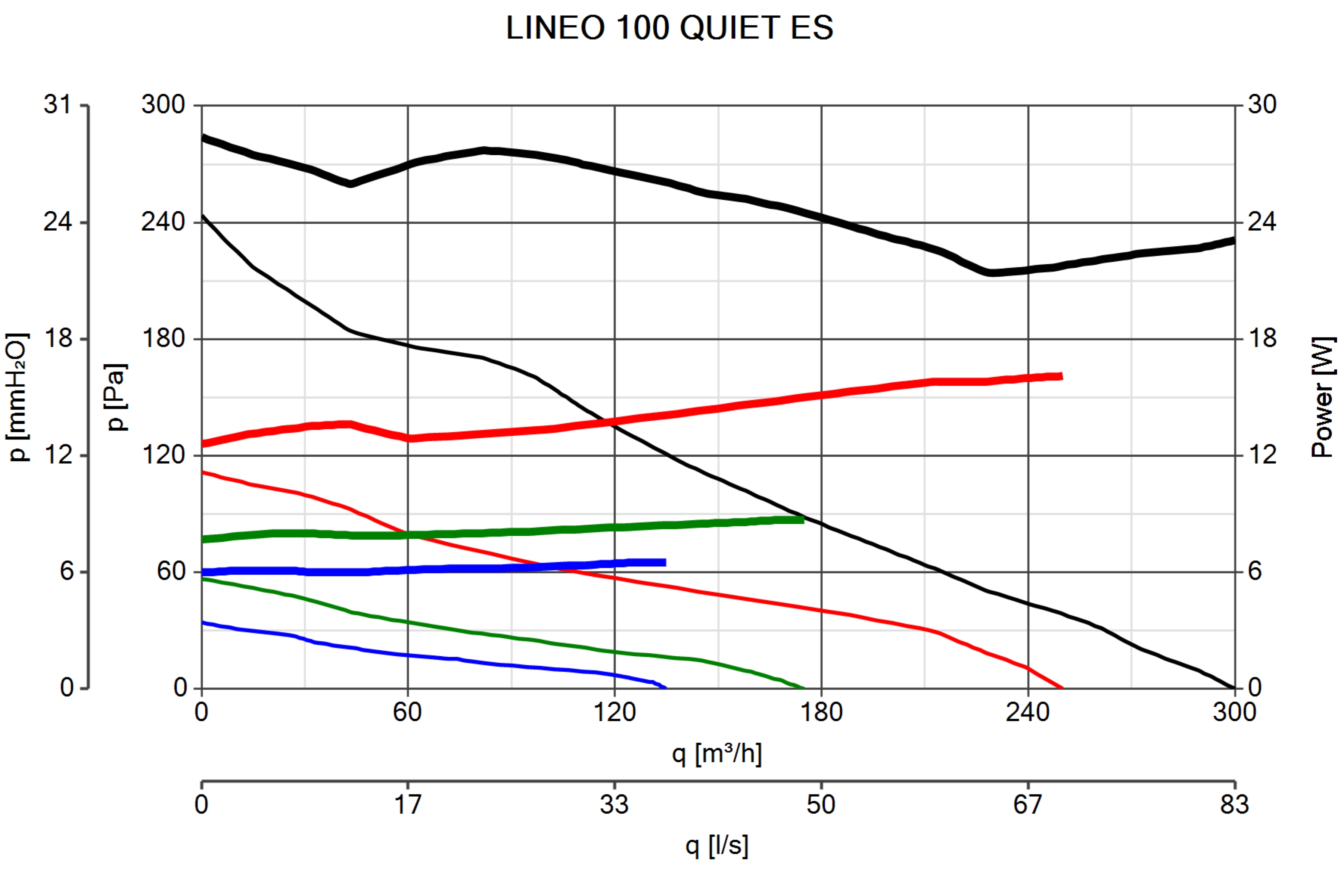 Vortice LINEO 100 QIET ES, Schallgedämmter Rohrventilator mit Mixvent-Technik, energiesparend, NW 100 mm, PP-Kunststoff, 2-stufiger bürstenloser EC-Motor, 220-240 V~50/60 Hz, 23 W, max. 0,26 A, max. 300 m³/h, max. 243,2 Pa, max. 2.510 U/min., LP max. 27,4 dB(A) -3m, Schutzart IP45, Schutzklasse II, Temp. max. für Dauerbetrieb 60 °C, Montagekonsole, Motor kugelgelagert, Ventilatoreinheit entnehmbar, 0-10 V Schnittstelle, thermischer Überlastschutz, Brandschutzklasse E-d2 nach DIN EN 13501-1