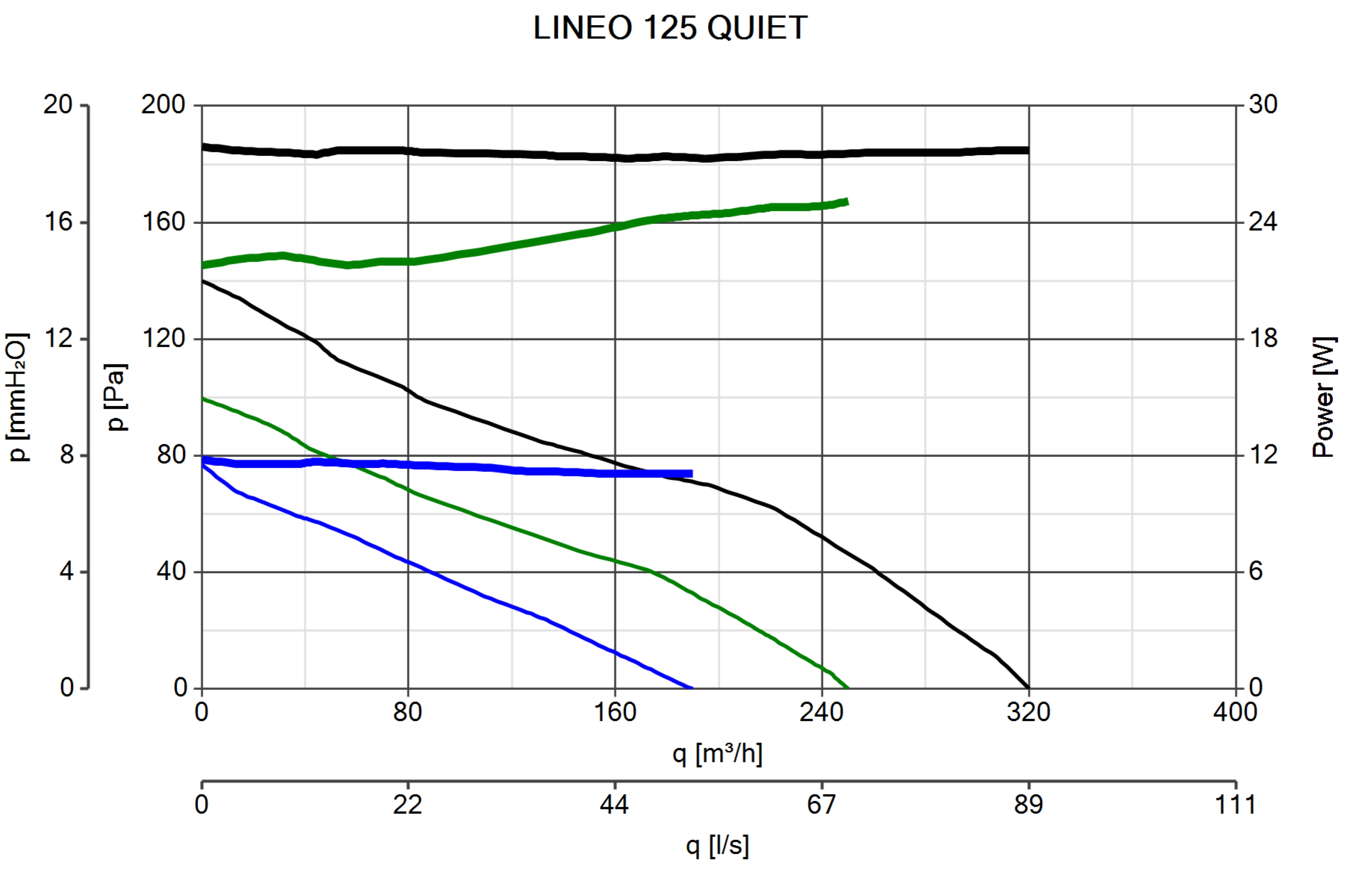 Vortice LINEO 125 QUIET, Schallgedämmter Rohrventilator mit Mixvent-Technik, NW 125 mm, PP-Kunststoff, 3-stufiger Wechselstrom-Motor, 220-240 V~50/60 Hz, 27 W, max. 0,13 A, max. 320 m³/h, max. 137,3 Pa, max. 1.880 U/min., LP max. 26,9 dB(A) -3m, Schutzart IP45, Schutzklasse II, Temp. max. für Dauerbetrieb 45 °C, Montagekonsole, Motor kugelgelagert, Ventilatoreinheit entnehmbar, drehzahlregelbar, thermischer Überlastschutz, Brandschutzklasse E-d2 nach DIN EN 13501-1
