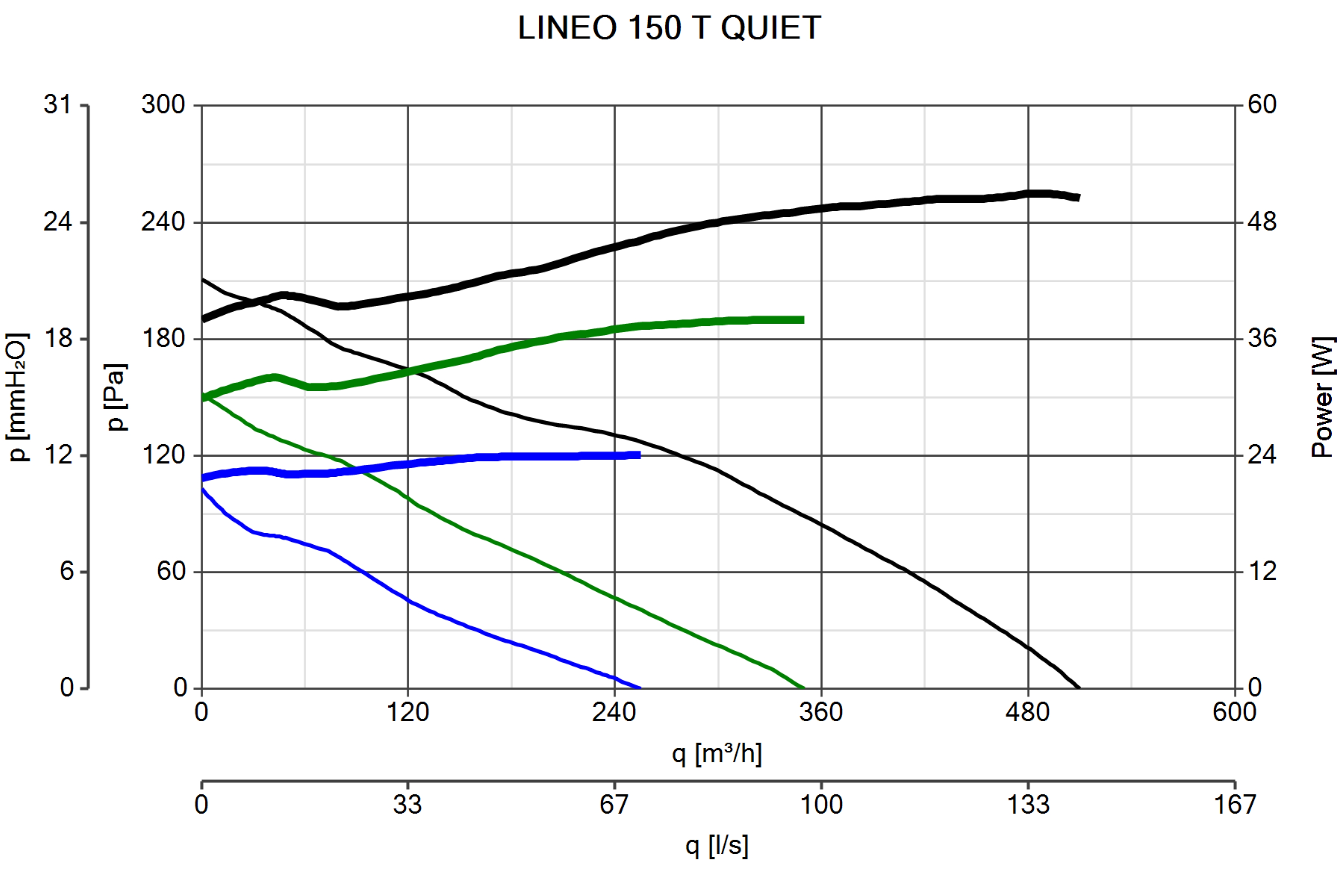 Vortice LINEO 150 T QUIET, Schallgedämmter Rohrventilator mit Mixvent-Technik, mit einstellbarem Nachlaufrelais (3-20 min.), NW 150 mm, PP-Kunststoff, 3-stufiger Wechselstrom-Motor, 220-240 V~50/60 Hz, 50 W, max. 0,22 A, max. 510 m³/h, max. 210,9 Pa, max. 2.030 U/min., LP max. 30,7 dB(A) -3m, Schutzart IP45, Schutzklasse II, Temp. max. für Dauerbetrieb 55 °C, Montagekonsole, Motor kugelgelagert, Ventilatoreinheit entnehmbar, drehzahlregelbar, thermischer Überlastschutz, Brandschutzklasse E-d2 nach DIN EN 13501-2