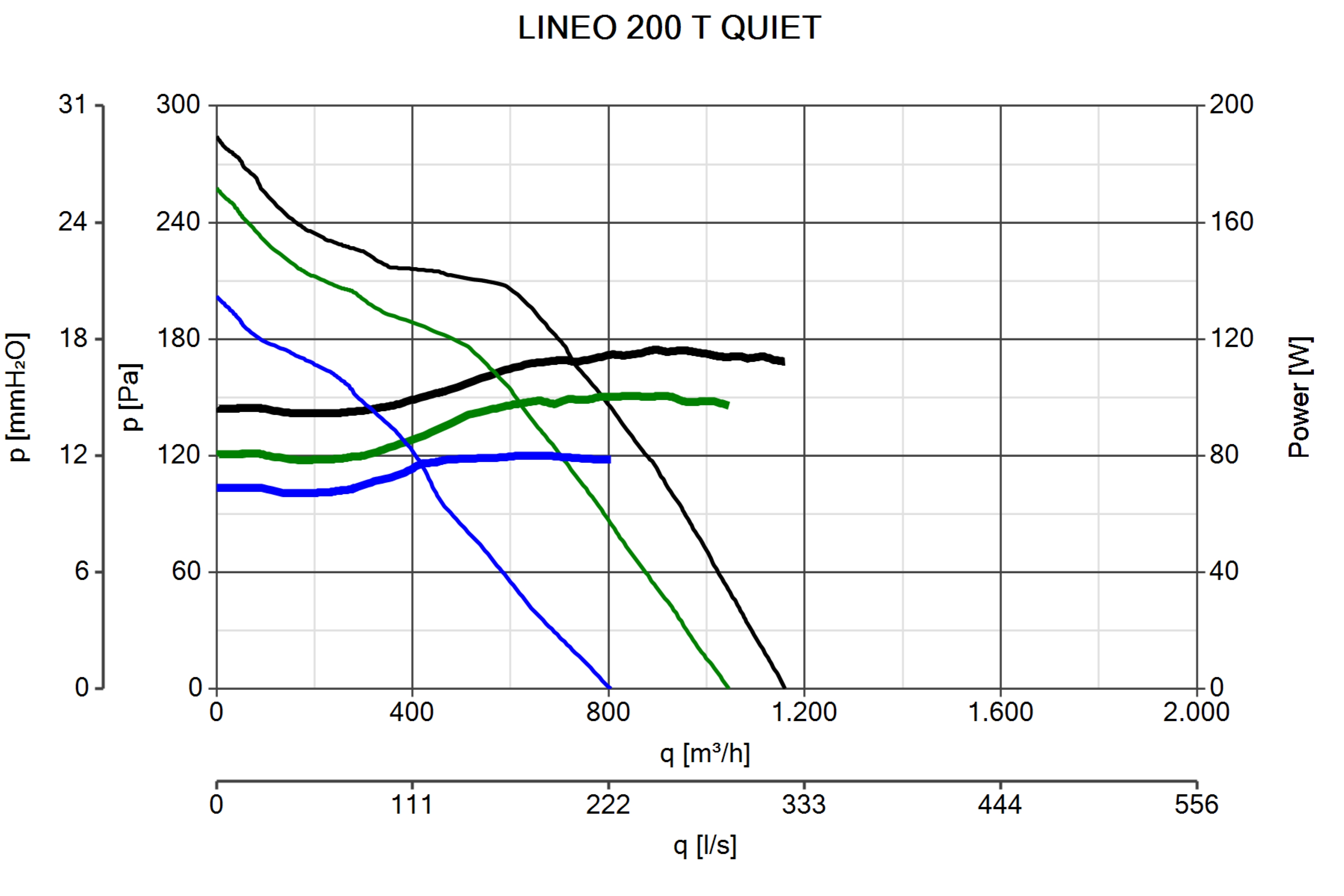 Vortice LINEO 200 T QUIET, Schallgedämmter Rohrventilator mit Mixvent-Technik, NW 200 mm, mit einstellbarem Nachlaufrelais (3-20 min.), PP-Kunststoff, 3-stufiger Wechselstrom-Motor, 220-240 V~50/60 Hz, 95 W, max. 0,49 A, max. 1.160 m³/h, max. 284,4 Pa, max. 2.690 U/min., LP max. 40,2 dB(A) -3m, Schutzart IPX5, Schutzklasse II, Temp. max. für Dauerbetrieb 50 °C, Montagekonsole, Motor kugelgelagert, Ventilatoreinheit entnehmbar, drehzahlregelbar, thermischer Überlastschutz, Brandschutzklasse E-d2 nach DIN EN 13501-1