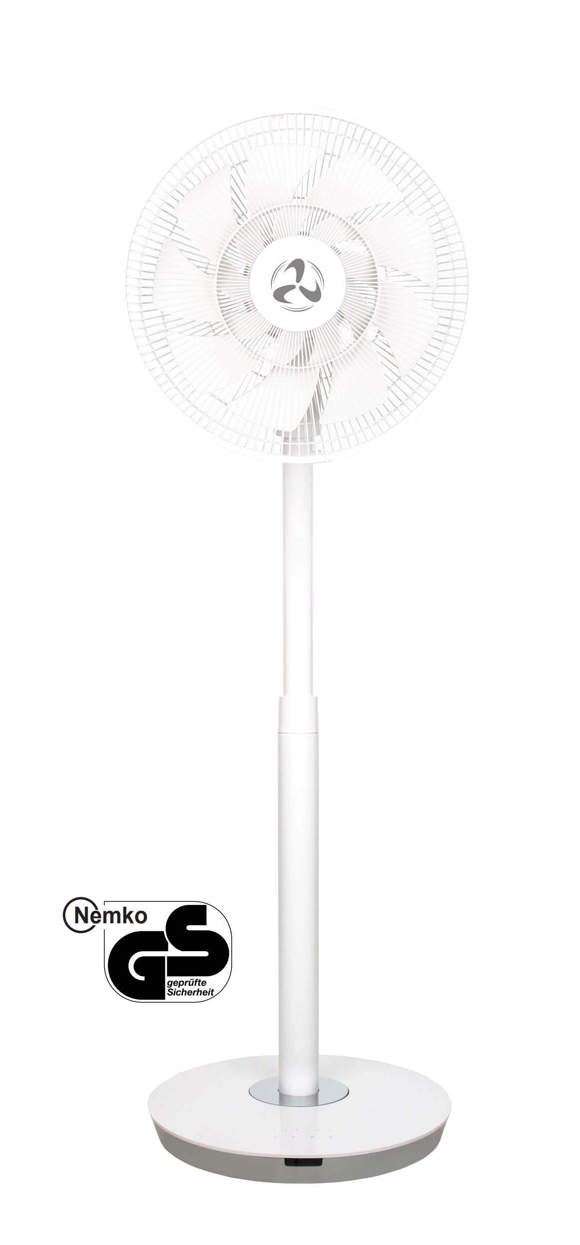 CasaFan AIROS ECO SV35, Standventilator mit EC-Motor, Leistung 25 W, 110-240/50-60 V/Hz, 12 Stufen, Softschalter am Gehäuse, 1.000 U/min, Gehäuse und Gitter weiß edelmatt, Oszllation in 3 Stufen (30°-60°-90°), inkl. IR-Fernbedienung, LED-Anzeige, 100° Korbneigung, stabiler Standfuß, höhenverstellbar von 890 - 1.100 mm, 24V-Steckernetzteil mit 2,0 m Zuleitung