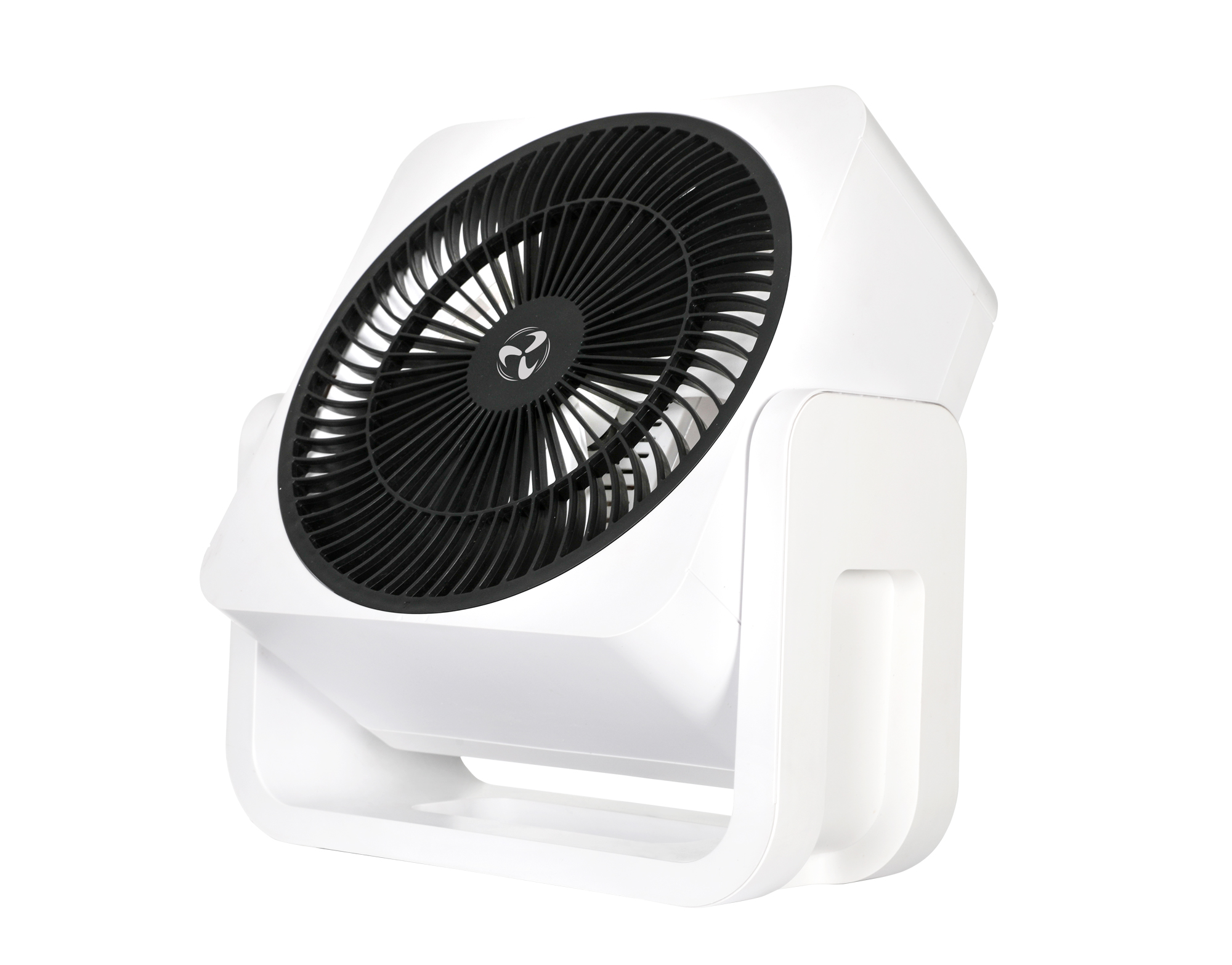 CasaFan AIROS CIRCUBOX WE, Tischventilator, Gehäuse weiß mattiert, Gitter schwarz, schlagzäher Kunststoff, Flügelrad Ø 200 mm, Motor 35 W, 220-240 V ~ 50 Hz, Drehzahl max. 2.395 U/min, 3 Stufen per Drehschalter, Gehäuseneigung in 5 Stufen bis 120° vertikal einstellbar, stabiler Standfuß, Kabellänge 1,8 m mit Euro-Flachstecker, Reichweite bis zu 10 m