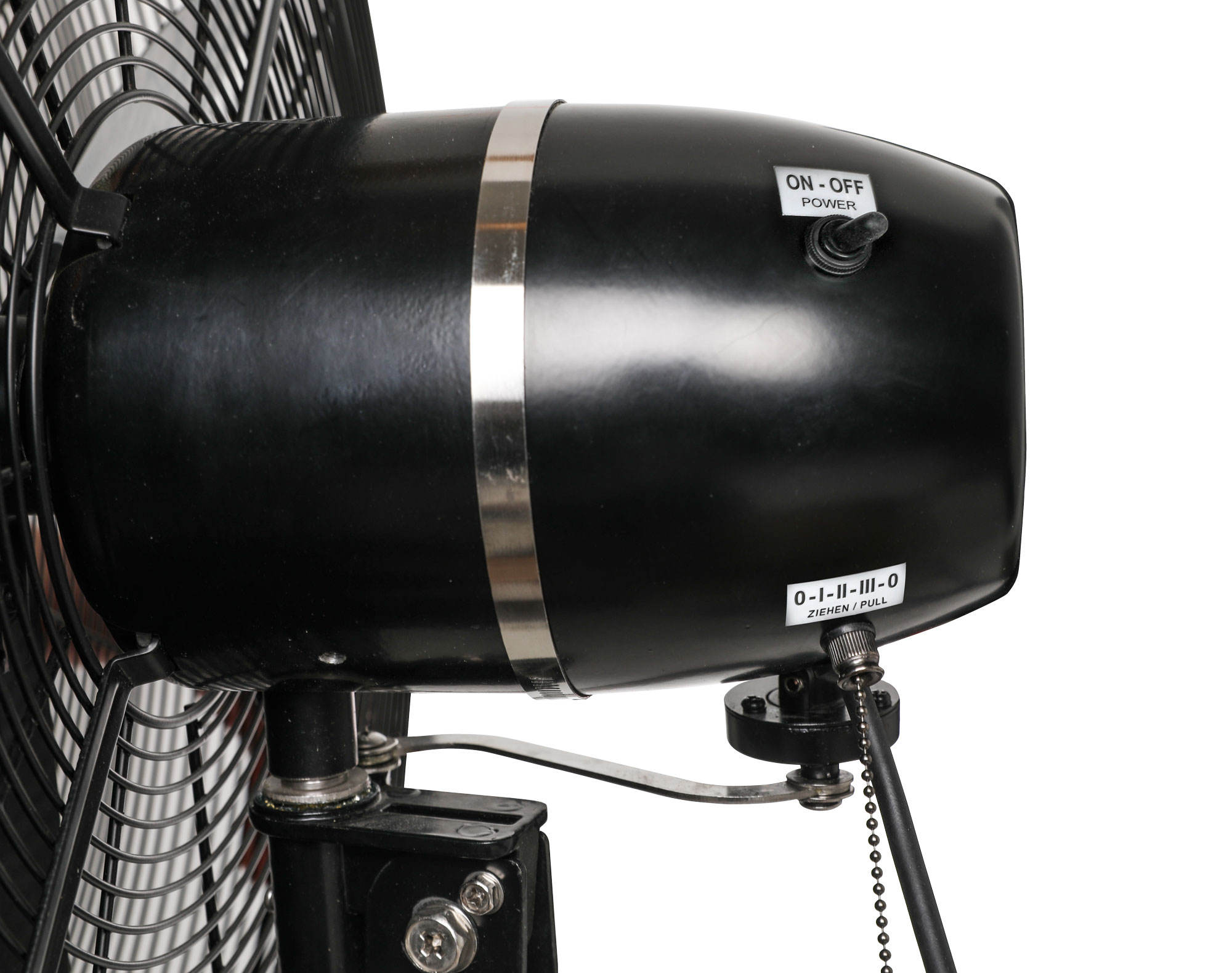 CasaFan Safeline Wand-Windmaschine für gewerblichen Einsatz, 123 W, 220 - 240 V / 50 Hz, Schutzkorb 700 mm, Schutzart IP44, 10.800 m³/h gem. EN 60879, Schutzgitter, Gehäuse, Rahmen und Wandhalter Stahl lackiert, Farbe mattschwarz, 2-poliger Netzschalter, 3 Stufen mittels gekapseltem Zugschnurschalter, abschaltbare horizontale 80°-Oszillation, vertikale Neigung von 40° einstellbar, stabile Ausführung, gekapselter, kugelgelagerter Motor, Fördermitteltemperatur: - 10° bis +45 °C, Kabel 2,5m Gummischlauchleitung für hohe mechanische Belastung H07RN-F 3 x 1,0 mm² mit Schutzkontaktstecker, zertifiziert nach Maschinenrichtline 2006/42/EC Teil 1 für die Verwendung im Gewerbe