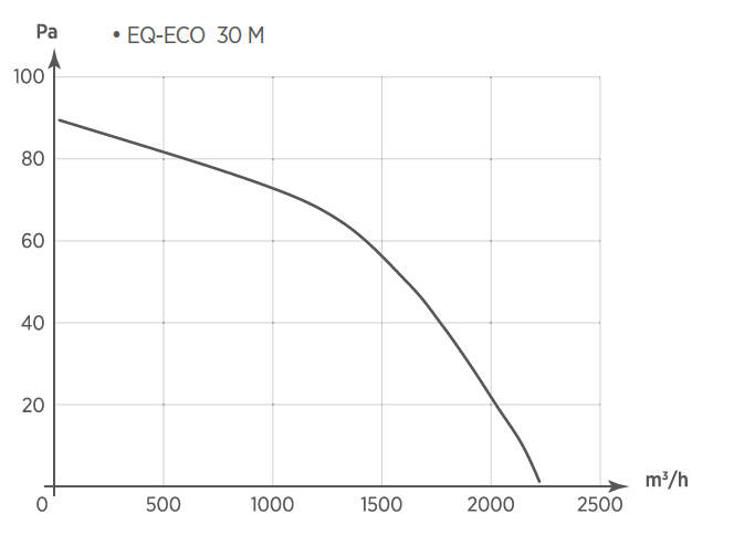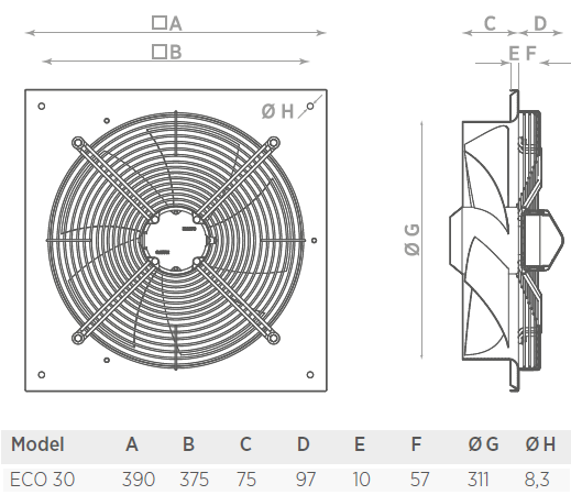 EQ ECO 30 M, Axialer Wandventilator, energiesparend, mit quadratischer Düsenwandplatte, Stahl verzinkt, Zweischicht- Korrosionsschutzlackierung, Farbe schwarz, NW 300 mm, 230 V~50-60 Hz, einphasig, max. 65 W, max. 2.200 m³/h, max. 0,5 A, max. 90 Pa, max. 1.600 U/min., LP max. 46 dB(A) -2m, Schutzart IP54, Schutzklasse I, 1 Stufe, max. Temp. + 60 °C, EC- Außenläufermotor, kugelgelagert, 0-10 V Schnittstelle, inkl. Potentiometer (125 x 105 x 52 mm)