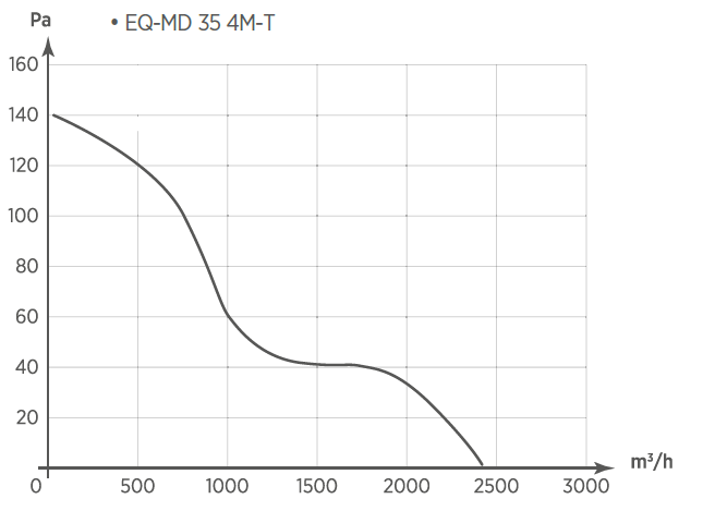 EQ MD 35/4M, Axialer Wandventilator, mit quadratischer Düsenwandplatte, Stahl verzinkt, Zweischicht- Korrosionsschutzlackierung, Farbe schwarz, NW 350 mm, 230 V~50-60 Hz, einphasig, 4-polig, max. 115 W, max. 2.400 m³/h, max. 0,7 A, max. 140 Pa, max. 1.400 U/min., LP max. 55 dB(A) -2m, Schutzart IP55, Schutzklasse I, 1 Stufe, max. Temp. + 60 °C, Motor kugelgelagert, drehzahlregelbar, reversierbar